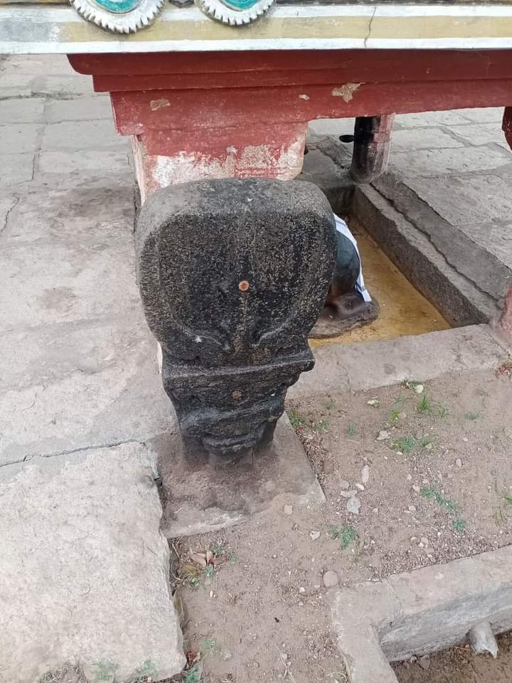 வெகு காலம் முன்பே அங்கிருந்த சிதிலமடைந்த இரண்டு பள்ளிப்படைகளும் பிரிக்கப்பட்டு அருகிலுள்ள கண்டியூர் வீரட்டானேஸ்வரர் கோவிலிலேயே (துவாரபாலகர் சிலை உட்பட) பல சிலைகளும் கற்களும் தஞ்சமைடைந்துள்ளன...