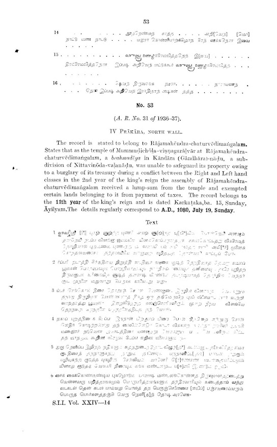 விளக்கம் :- கோவில் கொடையை பற்றி கூறும் இக்கல்வெட்டில், ராஜேந்திர சிங்கவள நாட்டு, மிழலை நாட்டு கள்ளர் பற்றின் ஆதித்தன் என்ற சோழ அரசு அதிகாரி குறிக்கப்பெறுகிறார்.